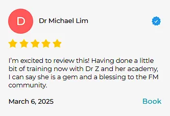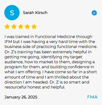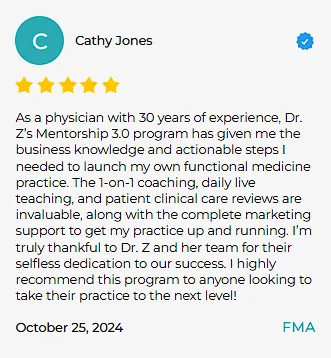 The Dr Z | Functional Medicine Academy is an education and training company. We do not sell a business opportunity, "get rich quick" program or money-making system. We believe, with education, individuals can be better prepared to make investment decisions, but we do not guarantee success in our training. We do not make earnings claims, efforts claims, or claims that our training will make you any money. All material is intellectual property and protected by copyright. Any duplication, reproduction, or distribution is strictly prohibited. Please see our Full Disclosure for important details.